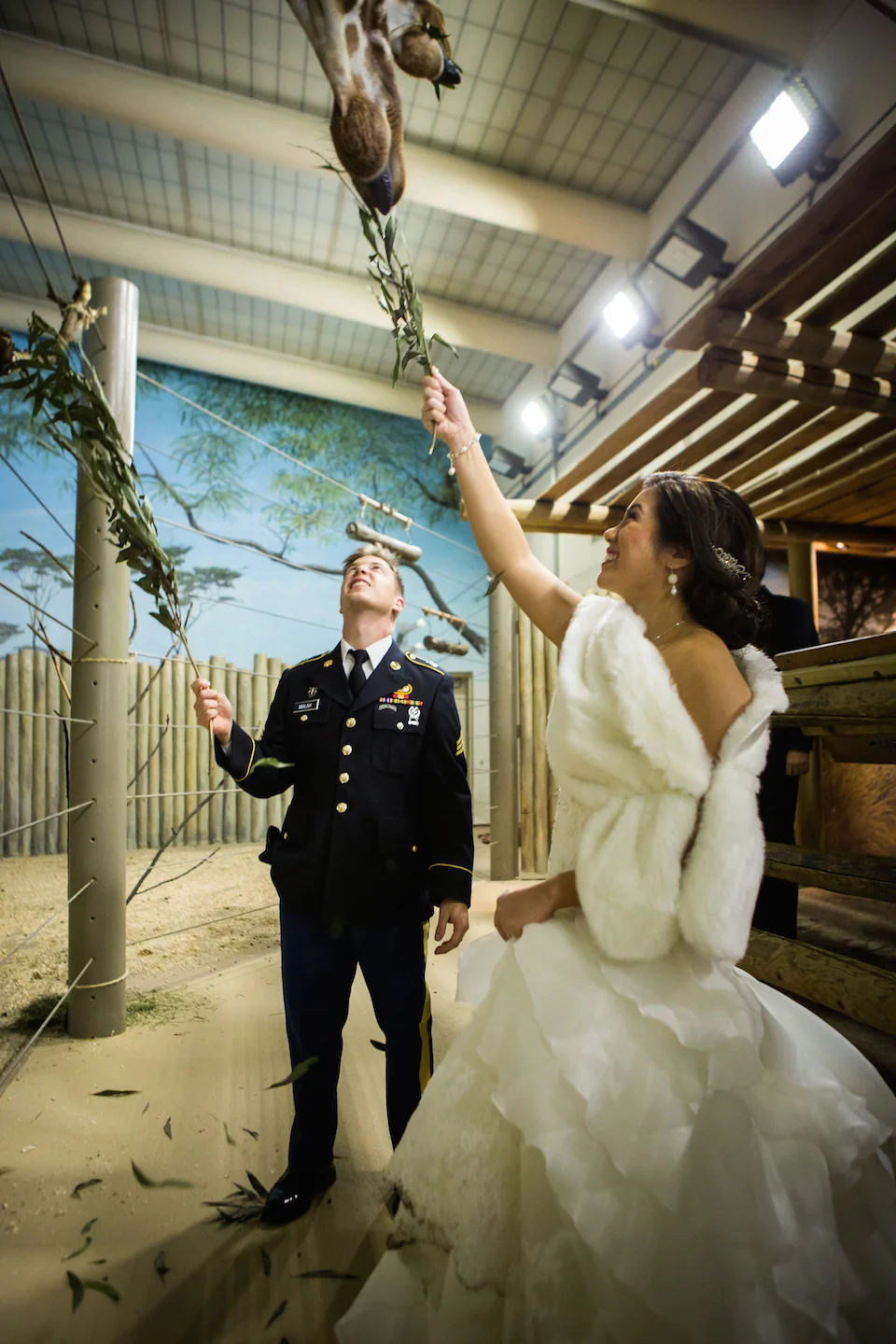 This was another "attitude is everything" situation. December 28th, 2013 was a glorious fifty degrees, which was so lucky! Unfortunately, because it was so nice outside, every single human being within a fifty mile radius decided to go to Brookfield Zoo to see their light display. The ceremony ended at 4pm, and it should have taken about 20 minutes for everyone to get to the zoo and enjoy cocktails with the giraffes.