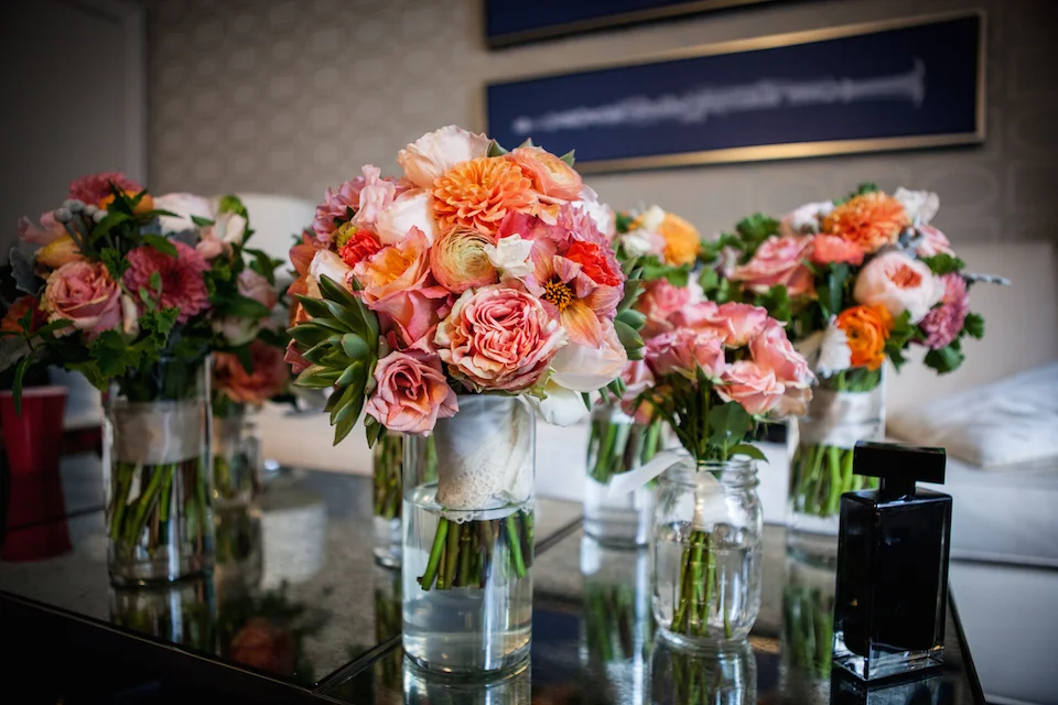 Every wedding is filled with loving friends and family who are excited to celebrate with the couple of the evening, that is true. But some weddings, somehow, are filled with extra love, even more excitement than usual, and it's so intense that you can feel it in the room. That was Emily and Ryan's wedding. They are a great couple, have been together a long time, and their people just could not have been happier to celebrate their union. The couple was all smiles throughout the day, even when the bridal party forgot their flowers in the fuss of getting from the cab to the venue untouched by the heavy rain. The AELO team threw some new bouquets together in time for the ceremony, and the rest of the day went off without a hitch!