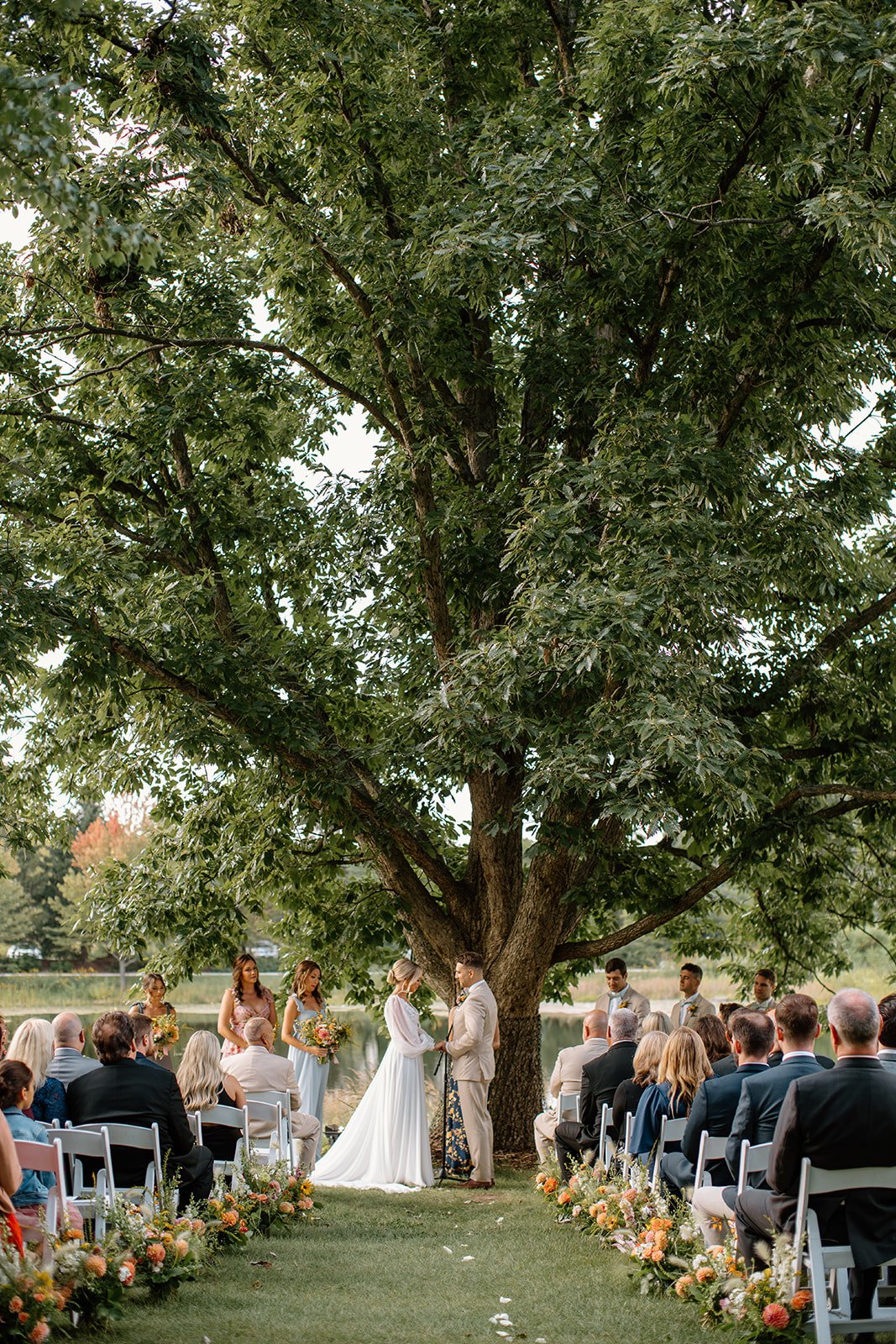 September at the Morton Arboretum is bound to be fantastic. The weather, the venue, the couple, the puppy dog--all *chef's kiss* simply perfection. On top of that, Carly and Ben are sincerely sweet people and it was an honor to help them get married. During their lakefront golden hour ceremony, each read aloud the vows they'd written privately for each other. It was astounding how similarly they expressed themselves, both of them even retelling the story of their first date the same way that it produced surprised giggles from their friends and family in attendance. It was delightful and a sign that they are truly meant to be. Once the ceremony concluded, the guests walked among the trees and flower beds to a secluded tent where a coursed dinner awaited. Once everyone had finished their meals, the DJ got the party going. This group danced the night away. It was a beautiful day for a beautiful couple!